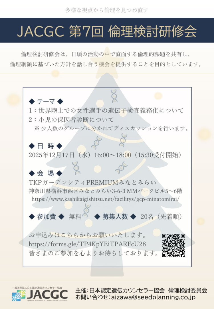 2025年度 認定遺伝カウンセリングセミナーの情報を更新しました
